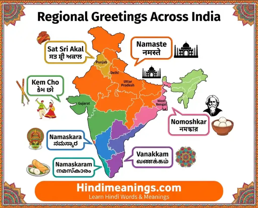 India has diverse greetings: Vanakkam (Tamil), Nomoshkar (Bengali), Namaskaram (Malayalam), Kemcho (Gujarati), and more, reflecting the country’s linguistic richness.